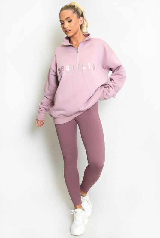 Santa Monica 1/4 Zip Mauve Sweatshirt